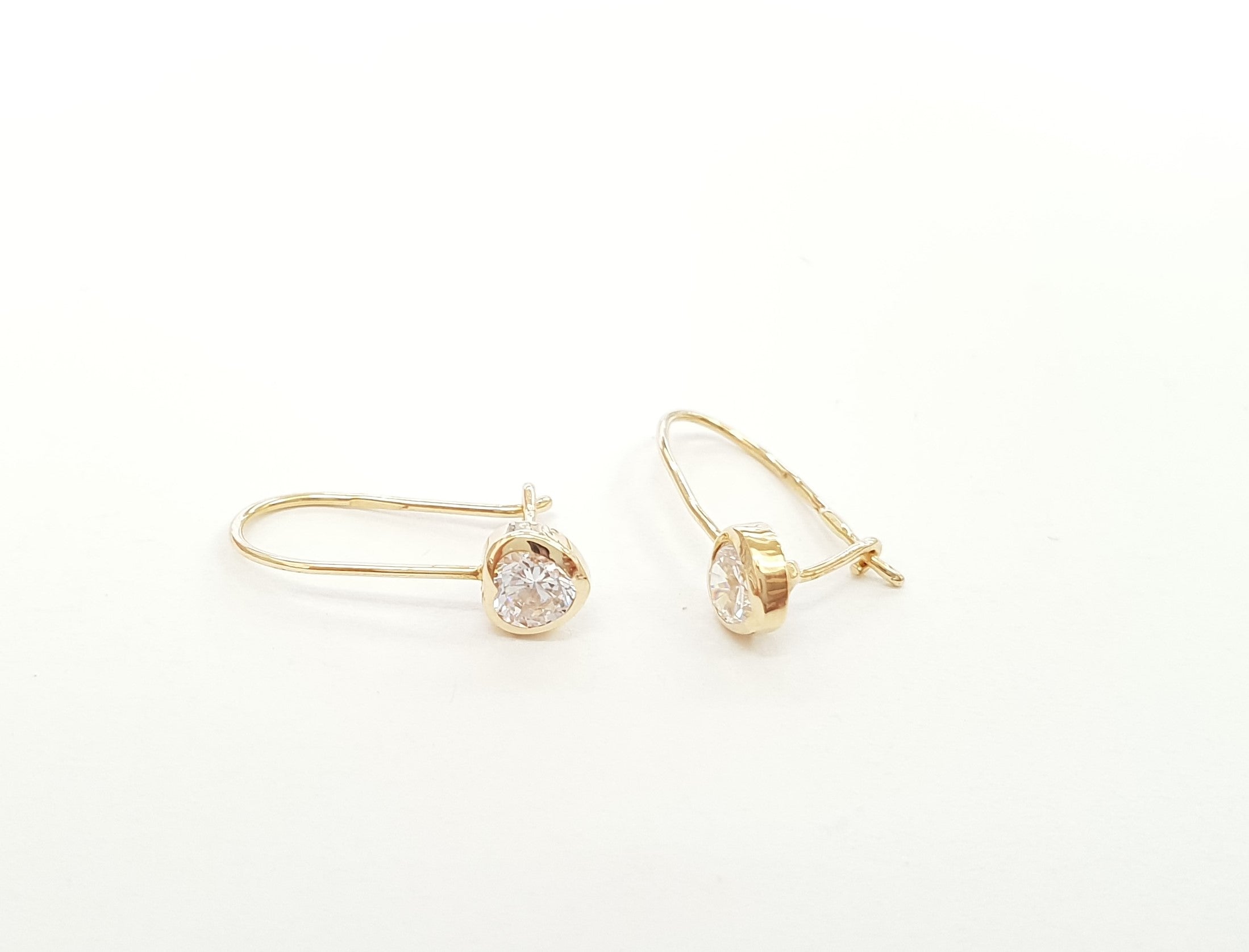 עגיל זהב תלוי עם זרקון בצורת לב בגודל 5*15 מ"מ